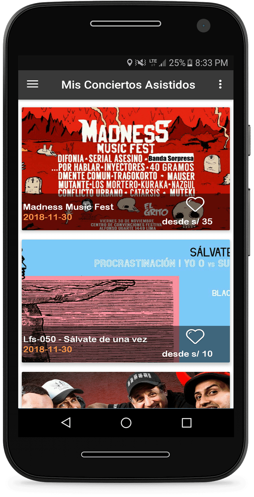 Descarga la aplicación movil para registrar tu asistencia cada vez que vayas a un concierto de tu banda favorita.
